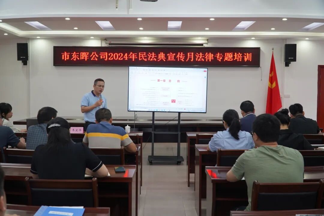 2024年5月是我國第四個(gè)民法典宣傳月,為不斷強(qiáng)化干部職工風(fēng)險(xiǎn)防范和合規(guī)管理意識(shí),提高企業(yè)防范和化解法律風(fēng)險(xiǎn)能力,5月21日上午,市東暉公司舉辦《公司法》系列講座——關(guān)于新公司法的相關(guān)條文解讀。講座由市東暉公司副總經(jīng)理羅傳凱主持,在家領(lǐng)導(dǎo)班子及全體員工參加。